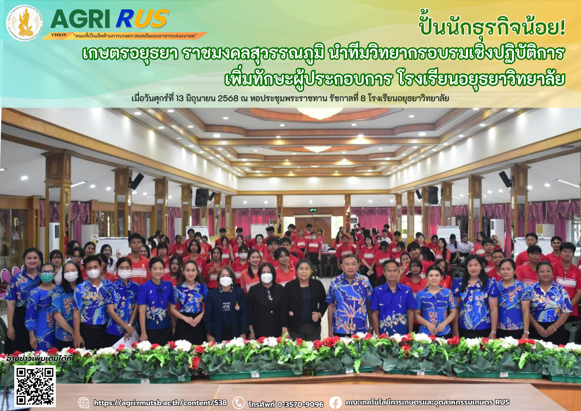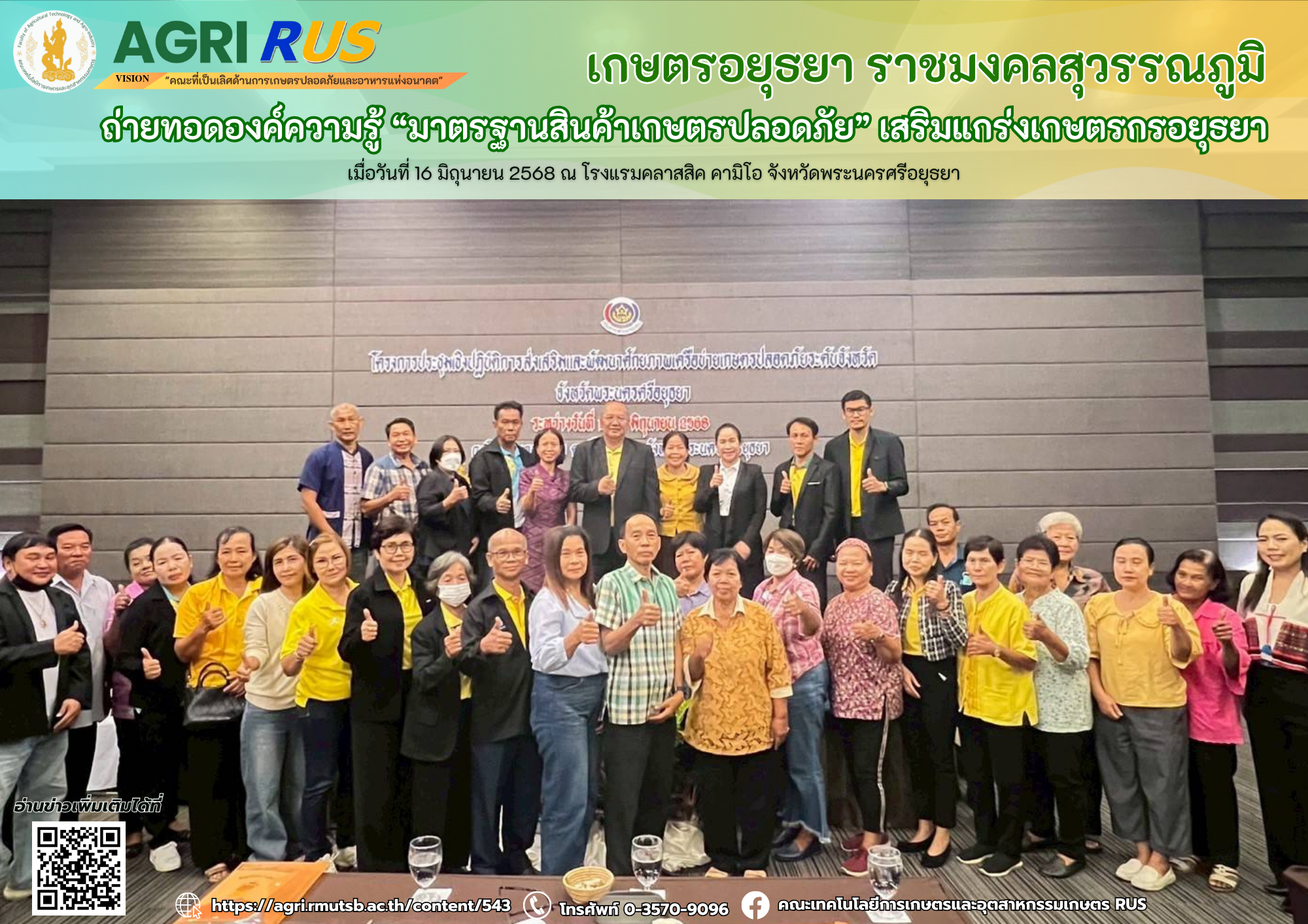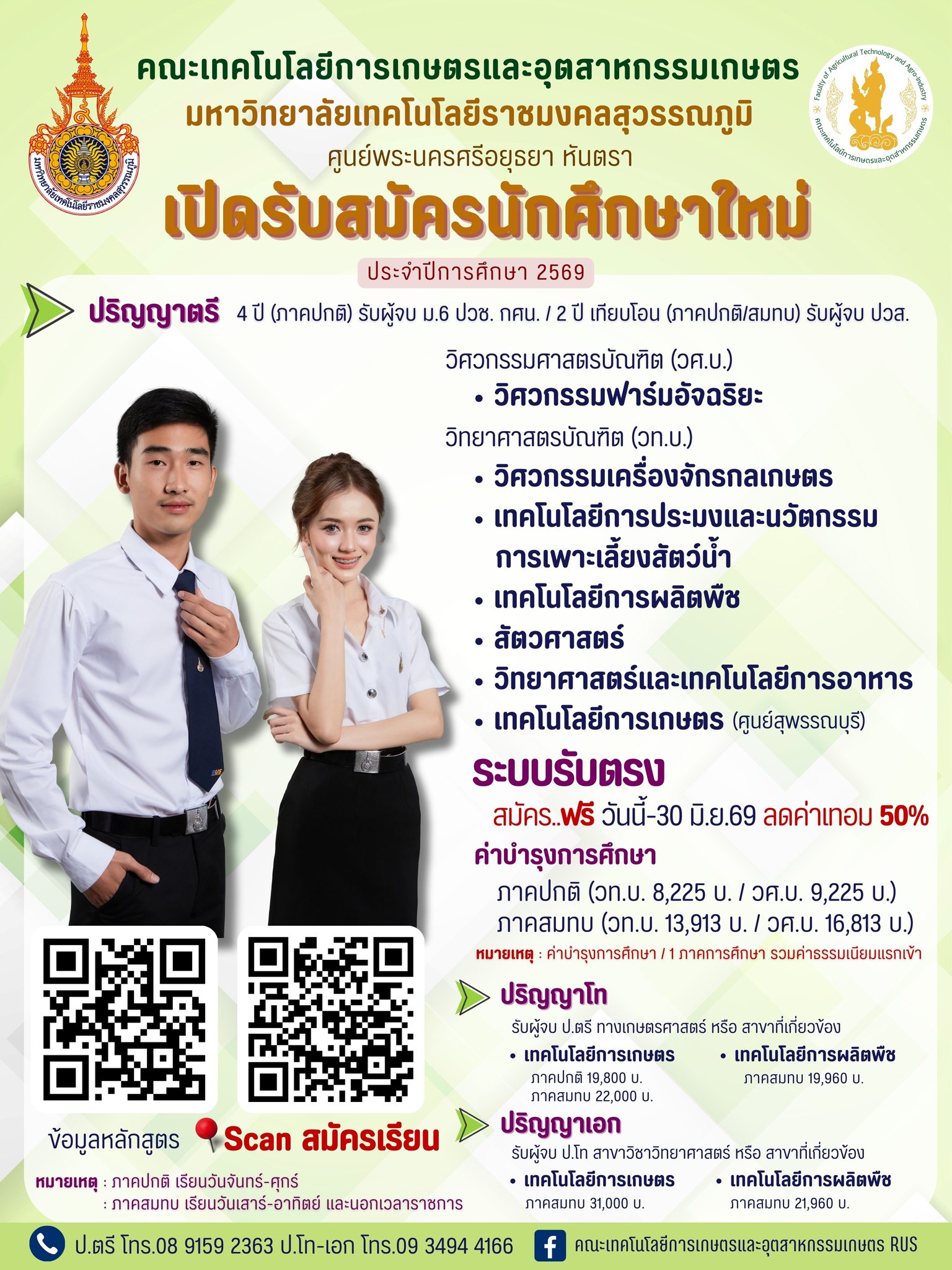 คณะเทคโนโลยีการเกษตรและอุตสาหกรรมเกษตร มหาวิทยาลัยเทคโนโลยีราชมงคลสุวรรณภูมิศูนย์พระนครศรีอยุธยา หันตรา 60 หมู่ 3 ถนนสายเอเซีย ตำบลหันตรา อำเภอพระนครศรีอยุธยา