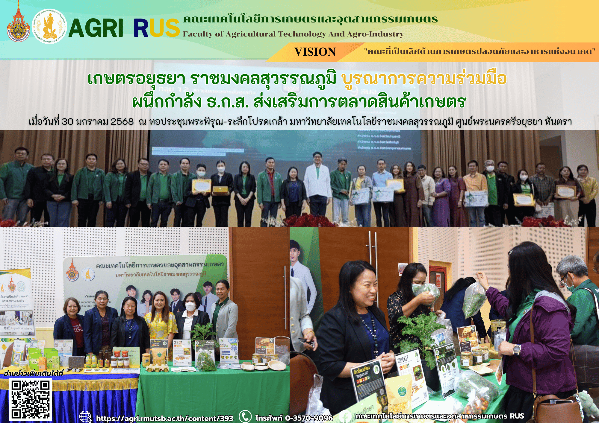 เกษตรอยุธยา ราชมงคลสุวรรณภูมิ บูรณาการความร่วมมือ ผนึกกำลัง ธ.ก.ส. ส่งเสริมการตลาดสินค้าเกษตร 9 จังหวัดภาคกลาง | 302 ครั้ง เมื่อ 10 เดือนที่แล้ว
