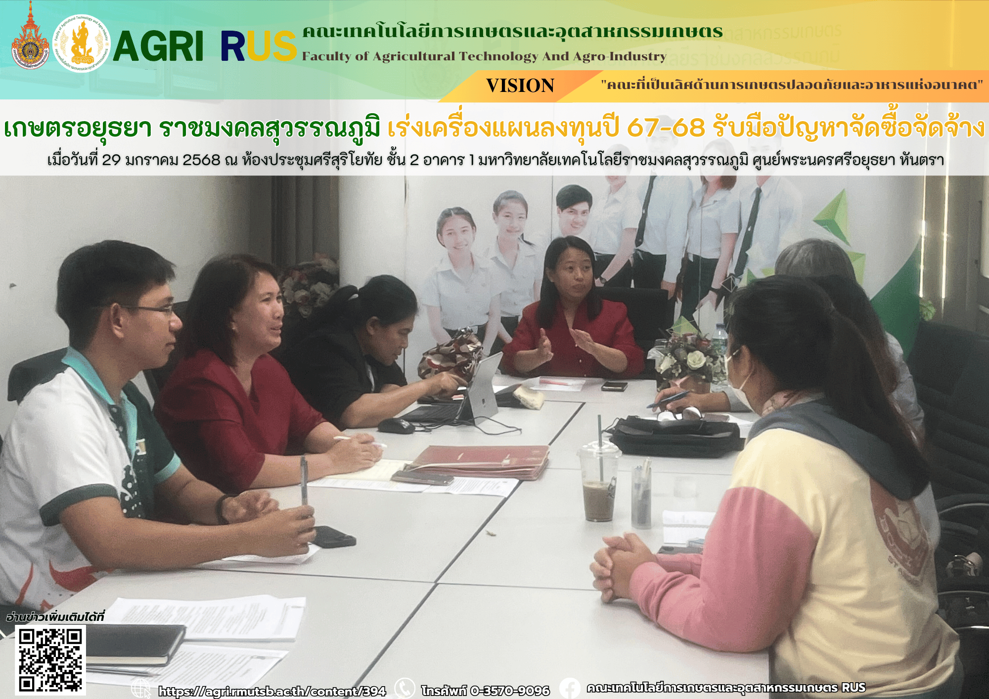 เกษตรอยุธยา ราชมงคลสุวรรณภูมิ เร่งเครื่องแผนลงทุนปี 67-68 รับมือปัญหาจัดซื้อจัดจ้าง | 167 ครั้ง เมื่อ 10 เดือนที่แล้ว