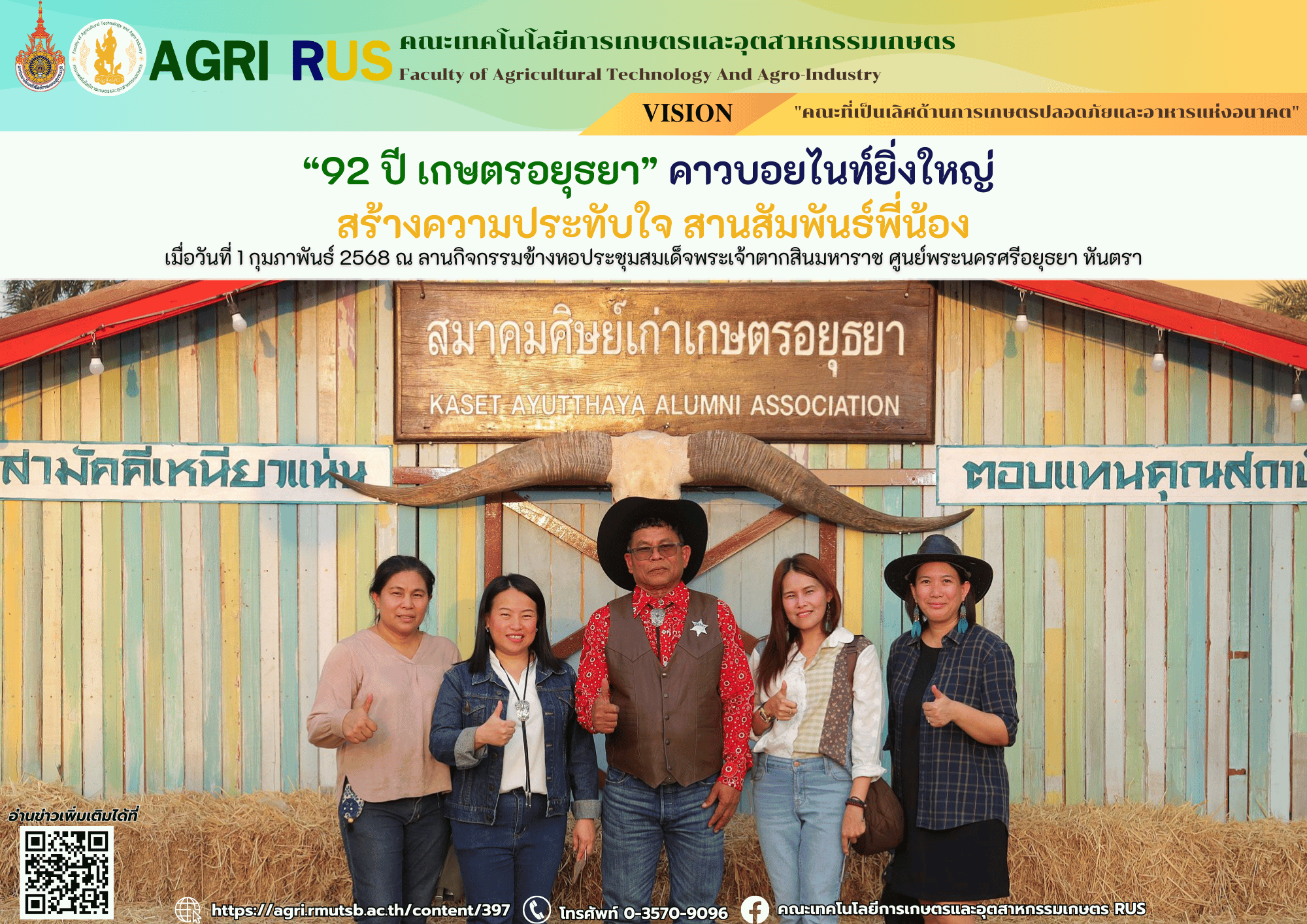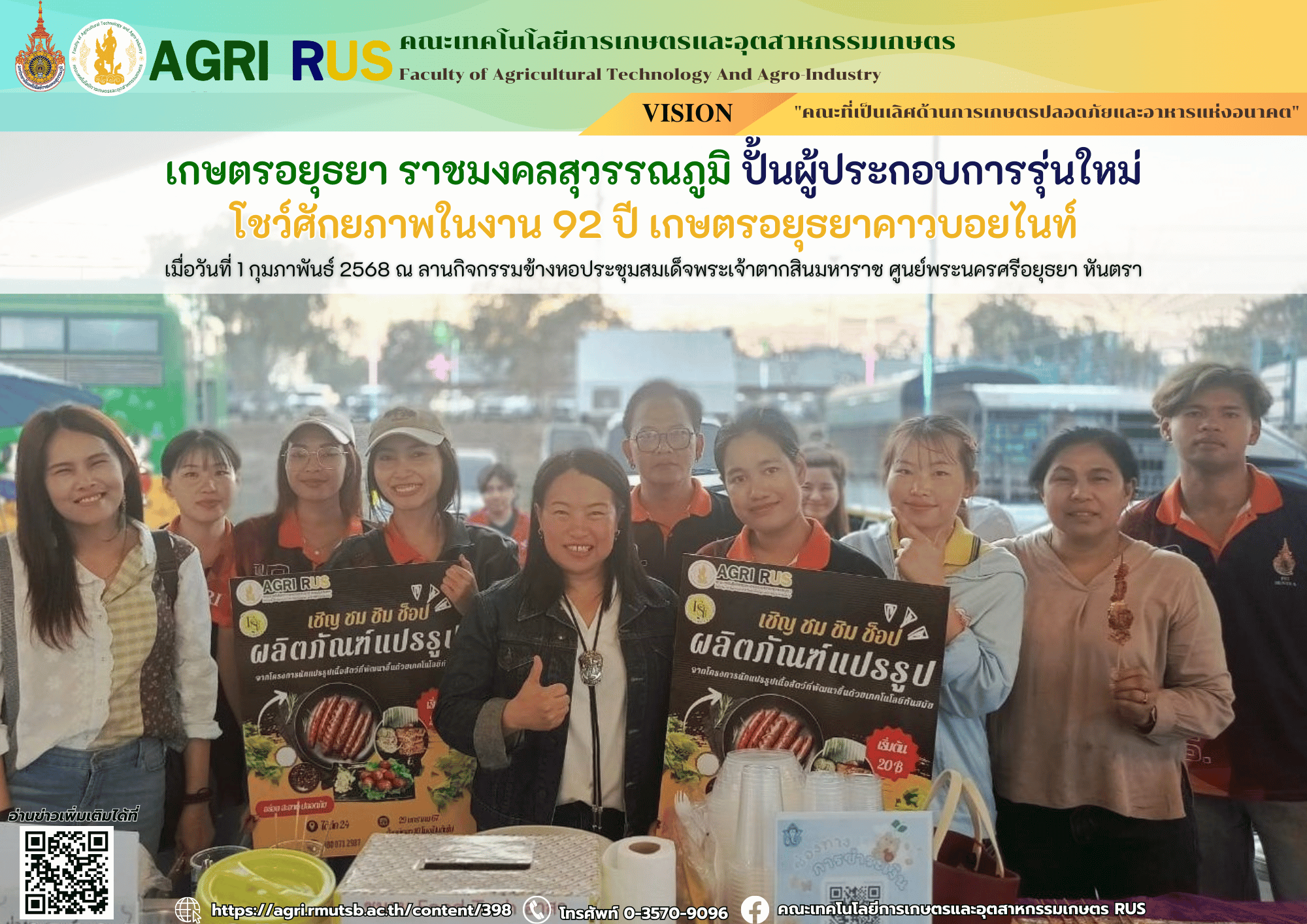 เกษตรอยุธยา ราชมงคลสุวรรณภูมิ ปั้นผู้ประกอบการรุ่นใหม่ โชว์ศักยภาพในงาน 92 ปี เกษตรอยุธยาคาวบอยไนท์ | 241 ครั้ง เมื่อ 10 เดือนที่แล้ว