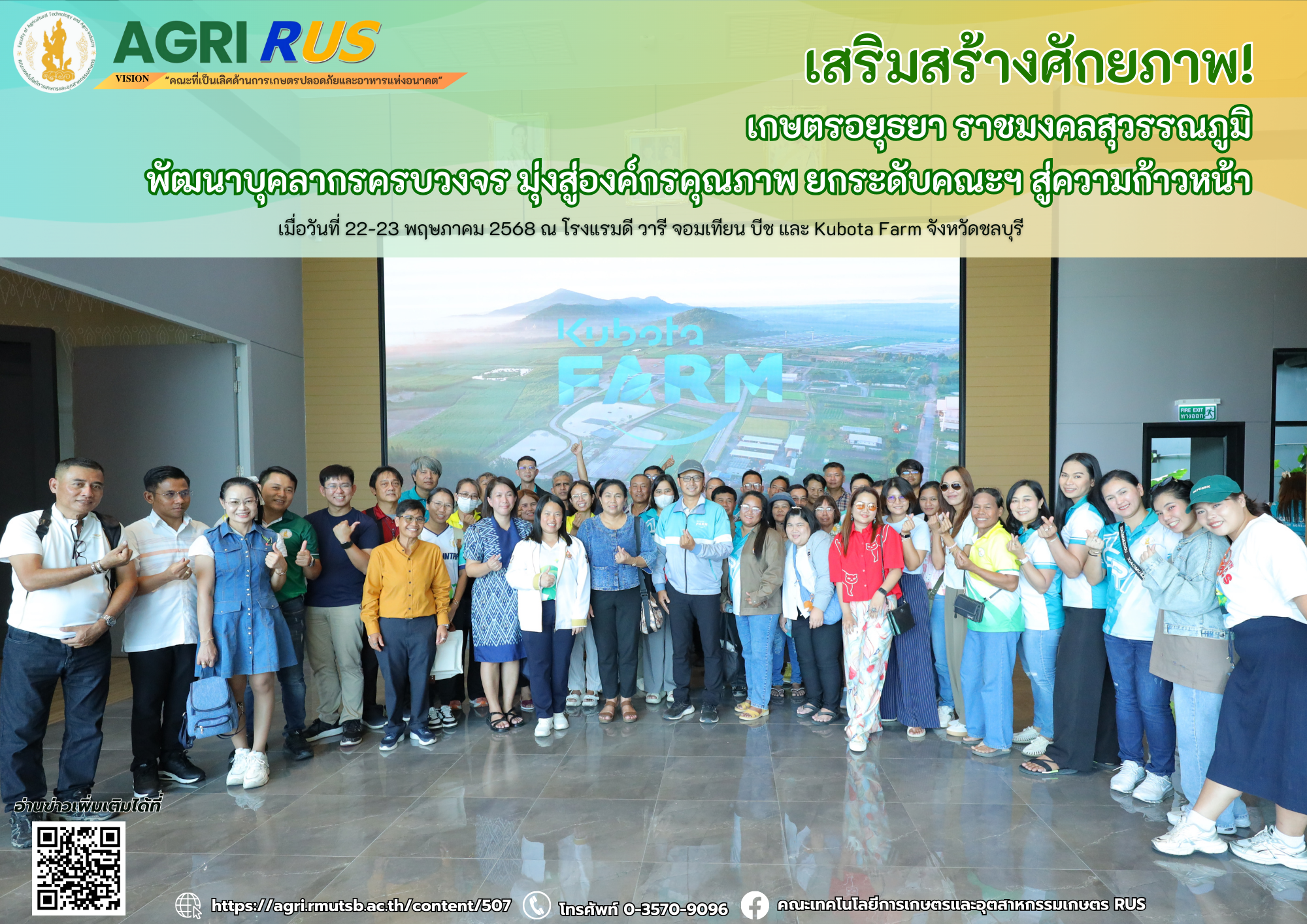 เกษตรอยุธยา ราชมงคลสุวรรณภูมิ ร่วมงานเสวนาวิชาการยกระดับศักยภาพบัณฑิตนักปฏิบัติ สู่ตลาดแรงงานสากล | 198 ครั้ง เมื่อ 5 เดือนที่แล้ว