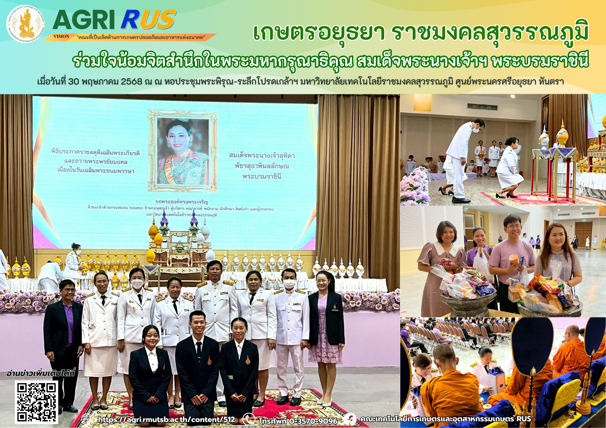เกษตรอยุธยา ราชมงคลสุวรรณภูมิ ร่วมใจน้อมจิตสำนึกในพระมหากรุณาธิคุณ สมเด็จพระนางเจ้าฯ พระบรมราชินี | 241 ครั้ง เมื่อ 6 เดือนที่แล้ว