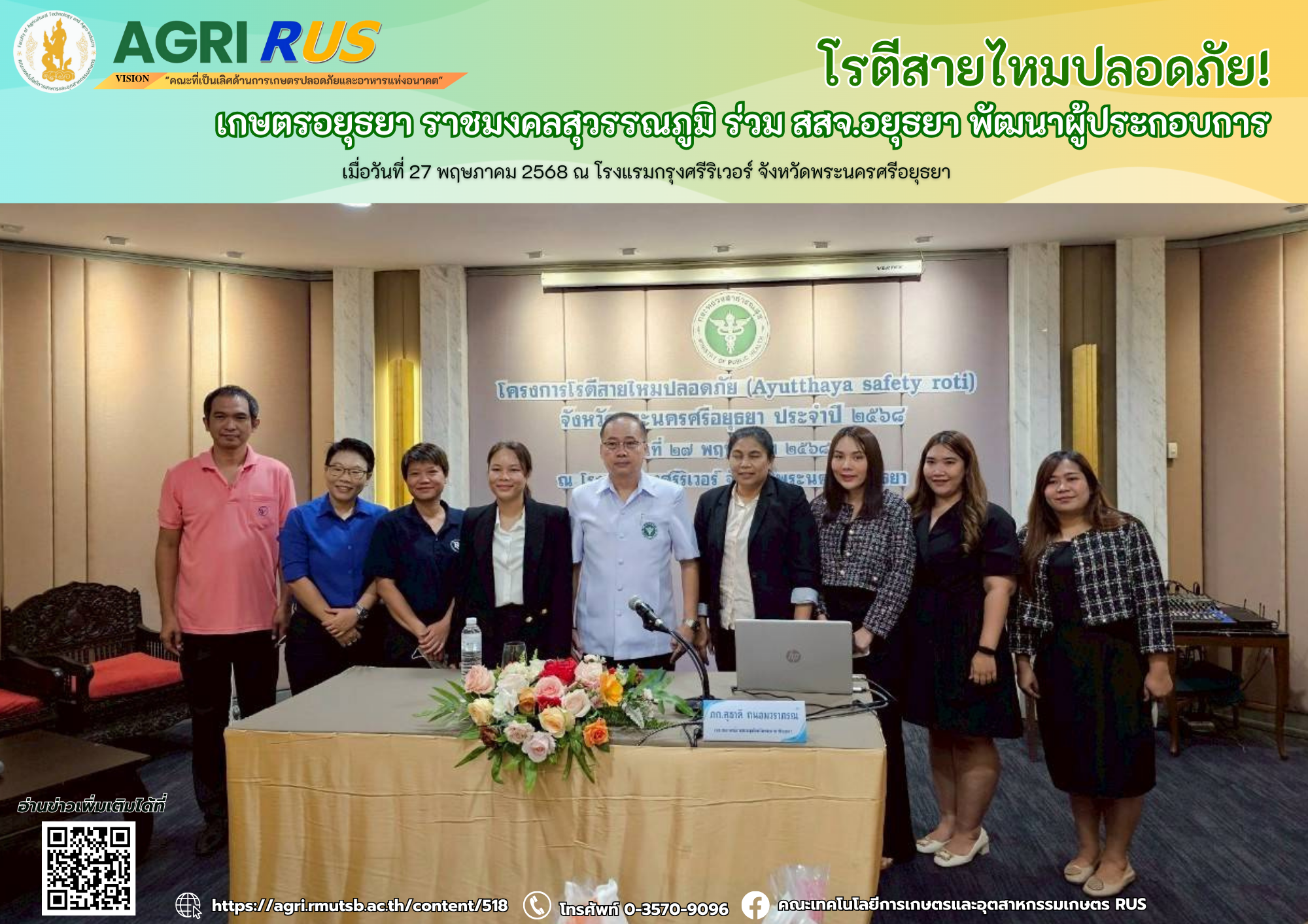 เกษตรอยุธยา ราชมงคลสุวรรณภูมิ ถ่ายทอดความรู้ “อาหารปลอดภัย” ยกระดับสินค้าชุมชนอยุธยาสู่มาตรฐานระดับจังหวัด | 254 ครั้ง เมื่อ 6 เดือนที่แล้ว