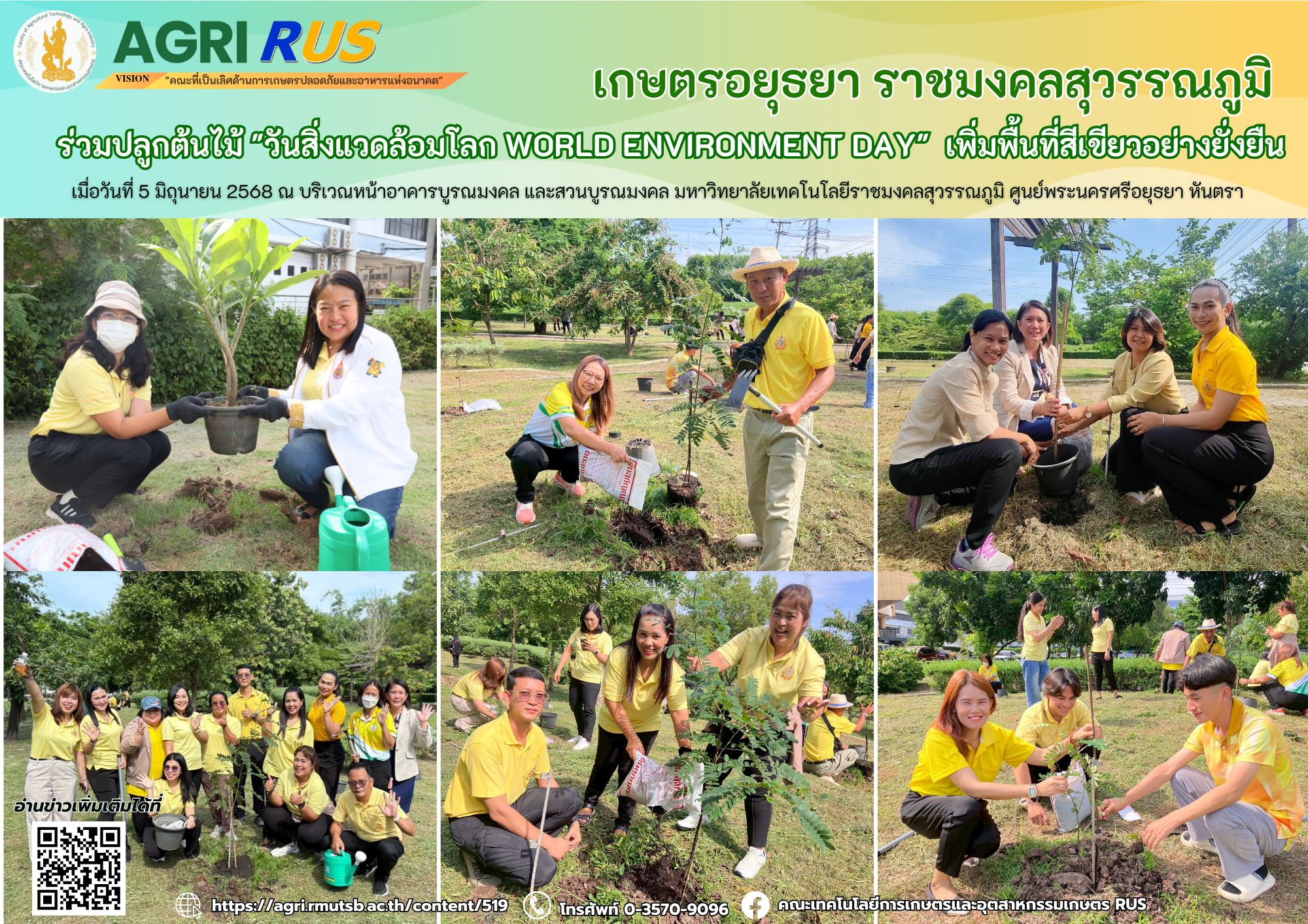 เกษตรอยุธยา ราชมงคลสุวรรณภูมิ ร่วมปลูกต้นไม้ "วันสิ่งแวดล้อมโลก WORLD ENVIRONMENT DAY" ขับเคลื่อนสิ่งแวดล้อมยั่งยืน สู่มหาวิทยาลัยสีเขียว | 251 ครั้ง เมื่อ 6 เดือนที่แล้ว