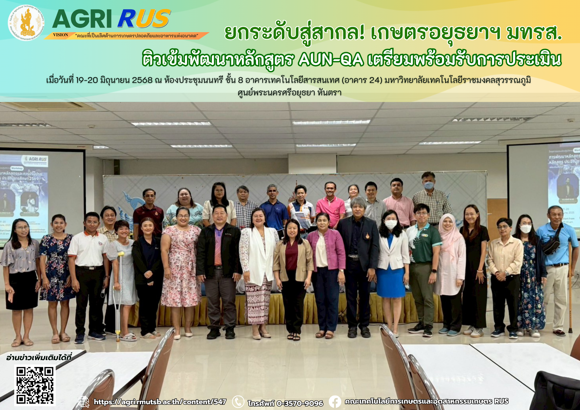 ยกระดับสู่สากล! เกษตรอยุธยาฯ มทรส. ติวเข้มพัฒนาหลักสูตร AUN-QA เตรียมพร้อมรับการประเมิน | 239 ครั้ง เมื่อ 5 เดือนที่แล้ว