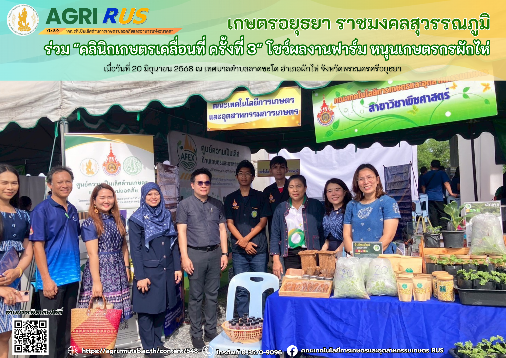 เกษตรอยุธยา ราชมงคลสุวรรณภูมิ ร่วม "คลินิกเกษตรเคลื่อนที่ ครั้งที่ 3" โชว์ผลงานฟาร์ม หนุนเกษตรกรผักไห่ | 254 ครั้ง เมื่อ 5 เดือนที่แล้ว