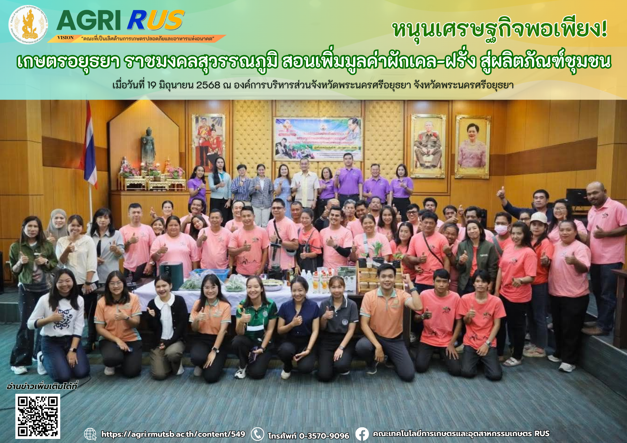 เกษตรอยุธยา ราชมงคลสุวรรณภูมิ ถ่ายทอดองค์ความรู้ “มาตรฐานสินค้าเกษตรปลอดภัย” เสริมแกร่งเกษตรกรอยุธยา | 212 ครั้ง เมื่อ 5 เดือนที่แล้ว