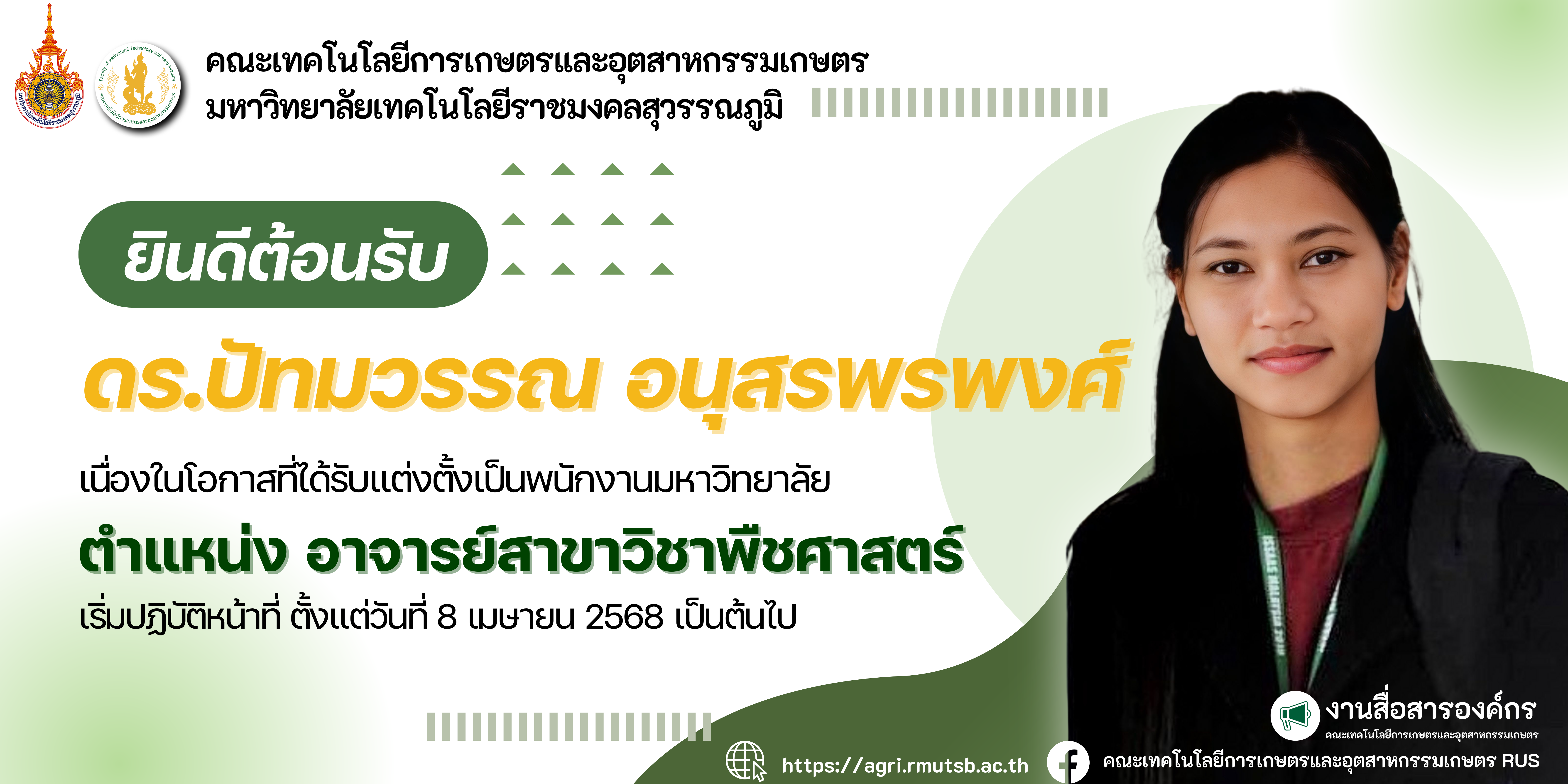 ขอยินดีต้อนรับอาจารย์ใหม่ อาจารย์ ดร.ปัทมวรรณ อนุสรพรพงศ์ อาจารย์ประจำสาขาวิชาพืชศาสตร์