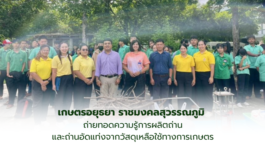 เกษตรอยุธยา ราชมงคลสุวรรณภูมิ ถ่ายทอดความรู้การผลิตถ่านและถ่านอัดแท่งจากวัสดุเหลือใช้ทางการเกษตร