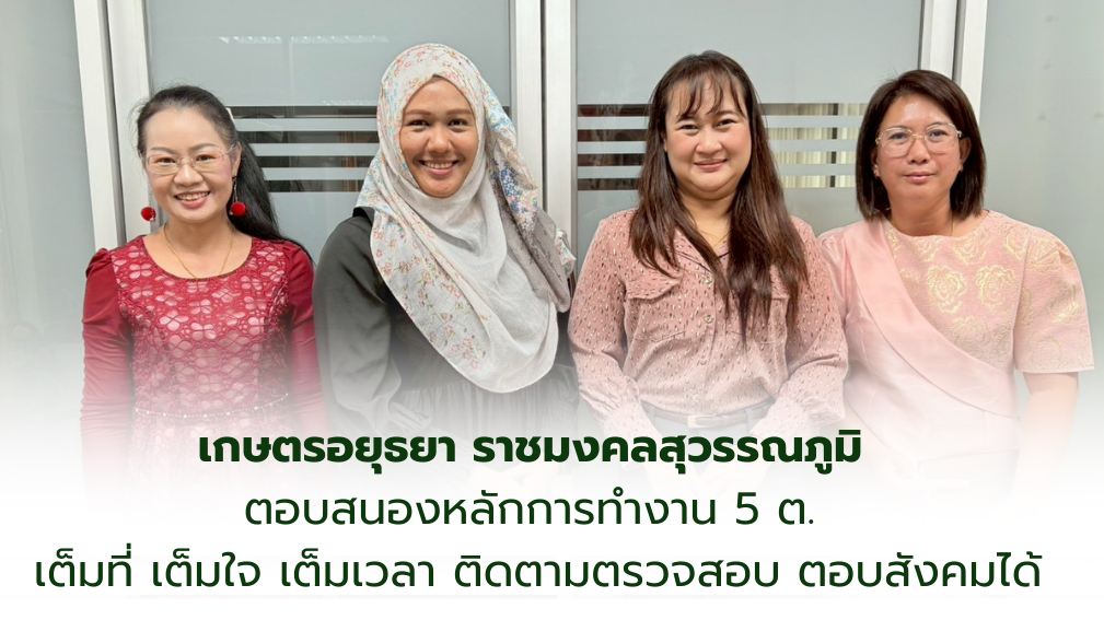 เกษตรอยุธยา ราชมงคลสุวรรณภูมิ ตอบสนองหลักการทำงาน 5 ต. เต็มที่ เต็มใจ เต็มเวลา ติดตามตรวจสอบ ตอบสังคมได้