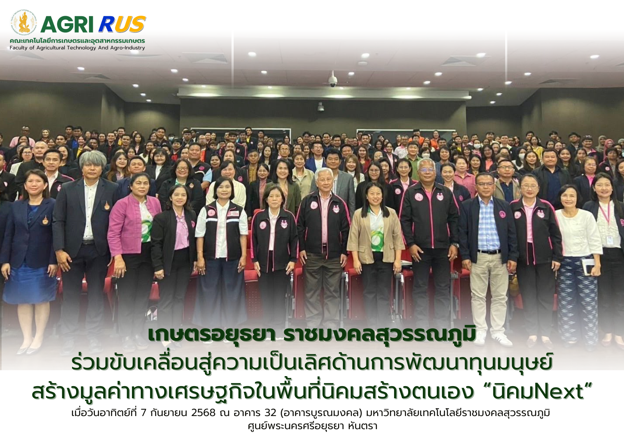 เกษตรอยุธยา ราชมงคลสุวรรณภูมิ ร่วมขับเคลื่อนสู่ความเป็นเลิศด้านการพัฒนาทุนมนุษย์ สร้างมูลค่าทางเศรษฐกิจในพื้นที่นิคมสร้างตนเอง “นิคมNext”