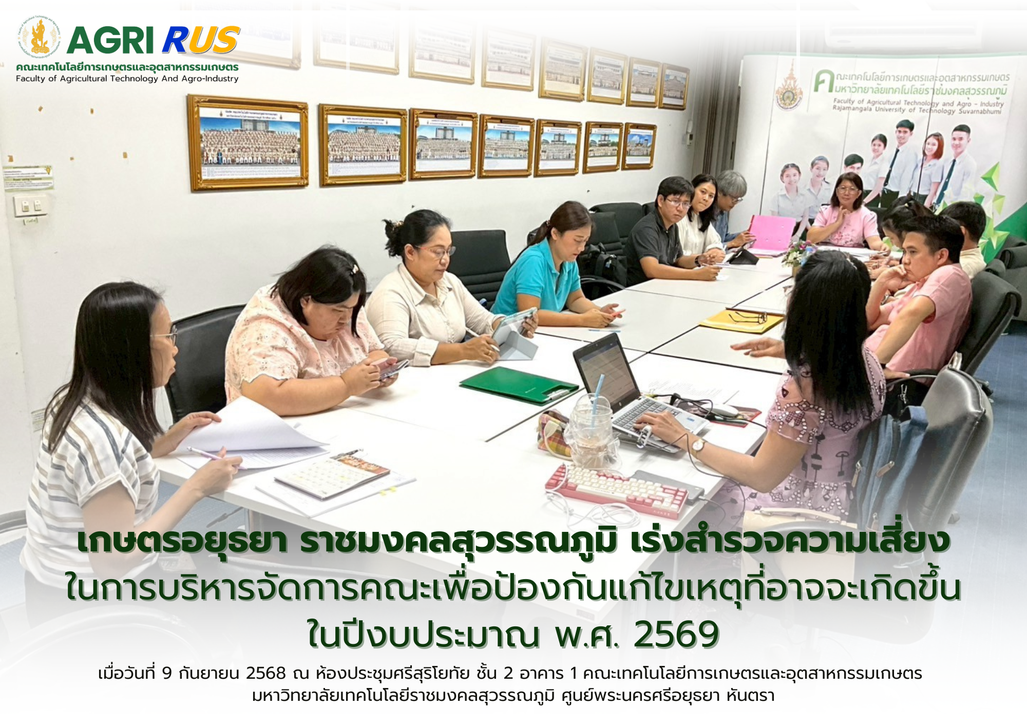 เกษตรอยุธยา ราชมงคลสุวรรณภูมิ เร่งสำรวจความเสี่ยงในการบริหารจัดการคณะเพื่อป้องกันแก้ไขเหตุที่อาจจะเกิดขึ้นในปีงบประมาณ พ.ศ. 2569