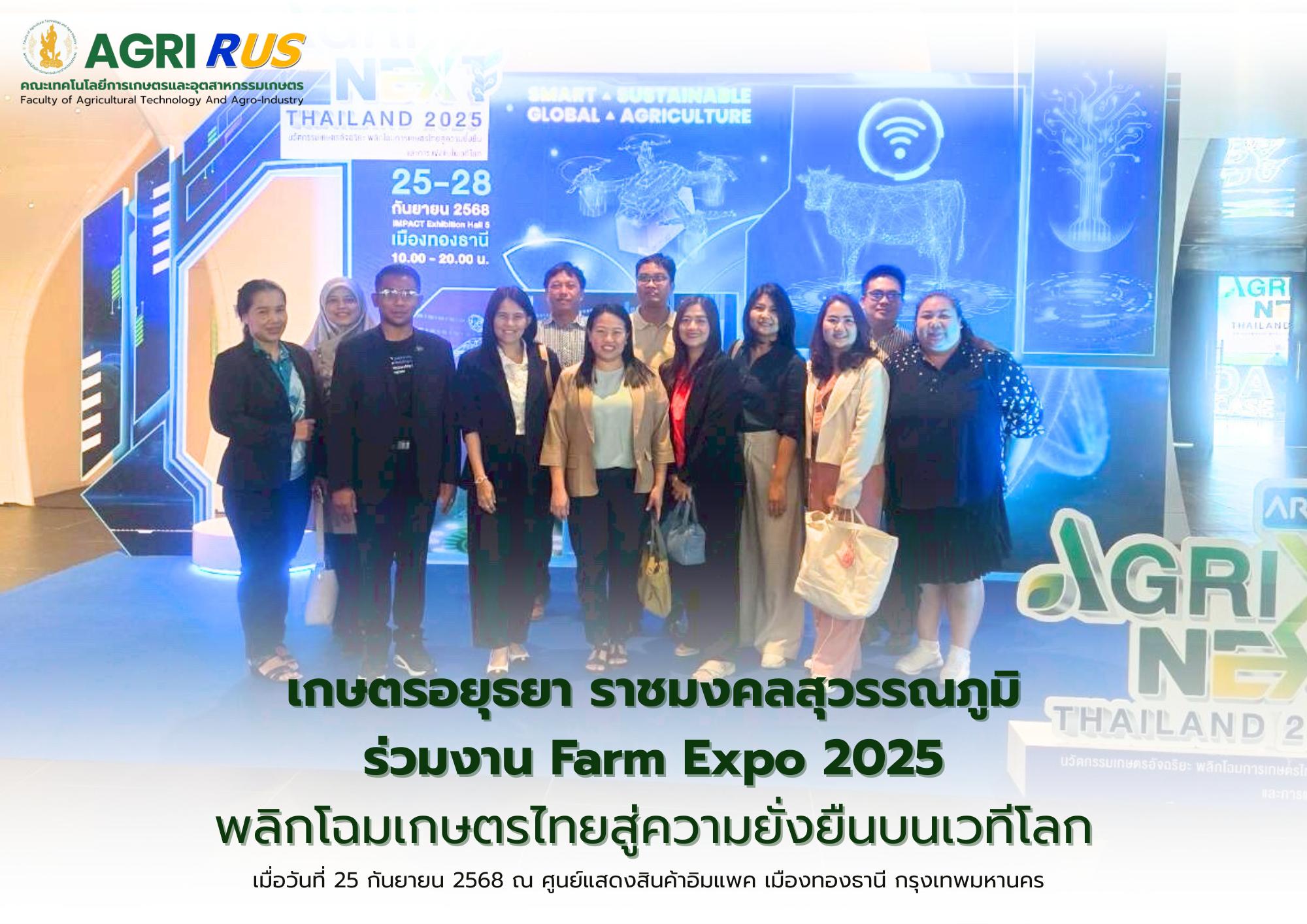 เกษตรอยุธยา ราชมงคลสุวรรณภูมิ ร่วมงาน Farm Expo 2025 พลิกโฉมเกษตรไทยสู่ความยั่งยืนบนเวทีโลก