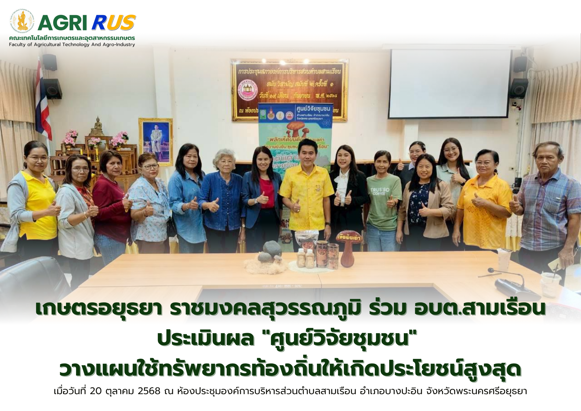 เกษตรอยุธยา ราชมงคลสุวรรณภูมิ ร่วม อบต.สามเรือน ประเมินผล "ศูนย์วิจัยชุมชน" วางแผนใช้ทรัพยากรท้องถิ่นให้เกิดประโยชน์สูงสุด