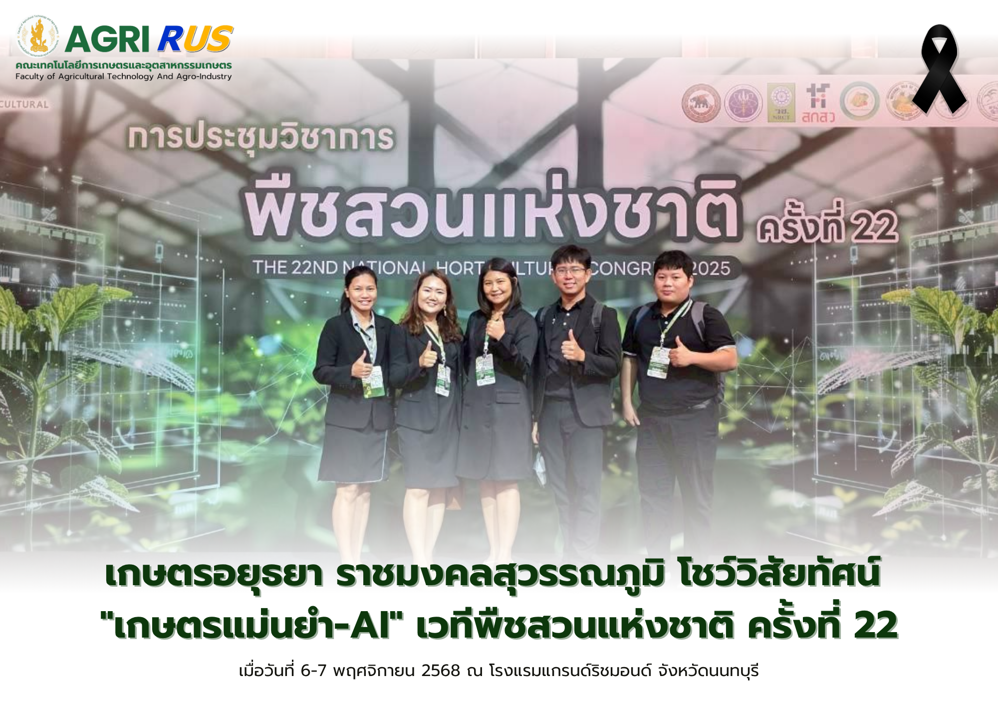 เกษตรอยุธยา ราชมงคลสุวรรณภูมิ โชว์วิสัยทัศน์ "เกษตรแม่นยำ-AI" เวทีพืชสวนแห่งชาติ ครั้งที่ 22
