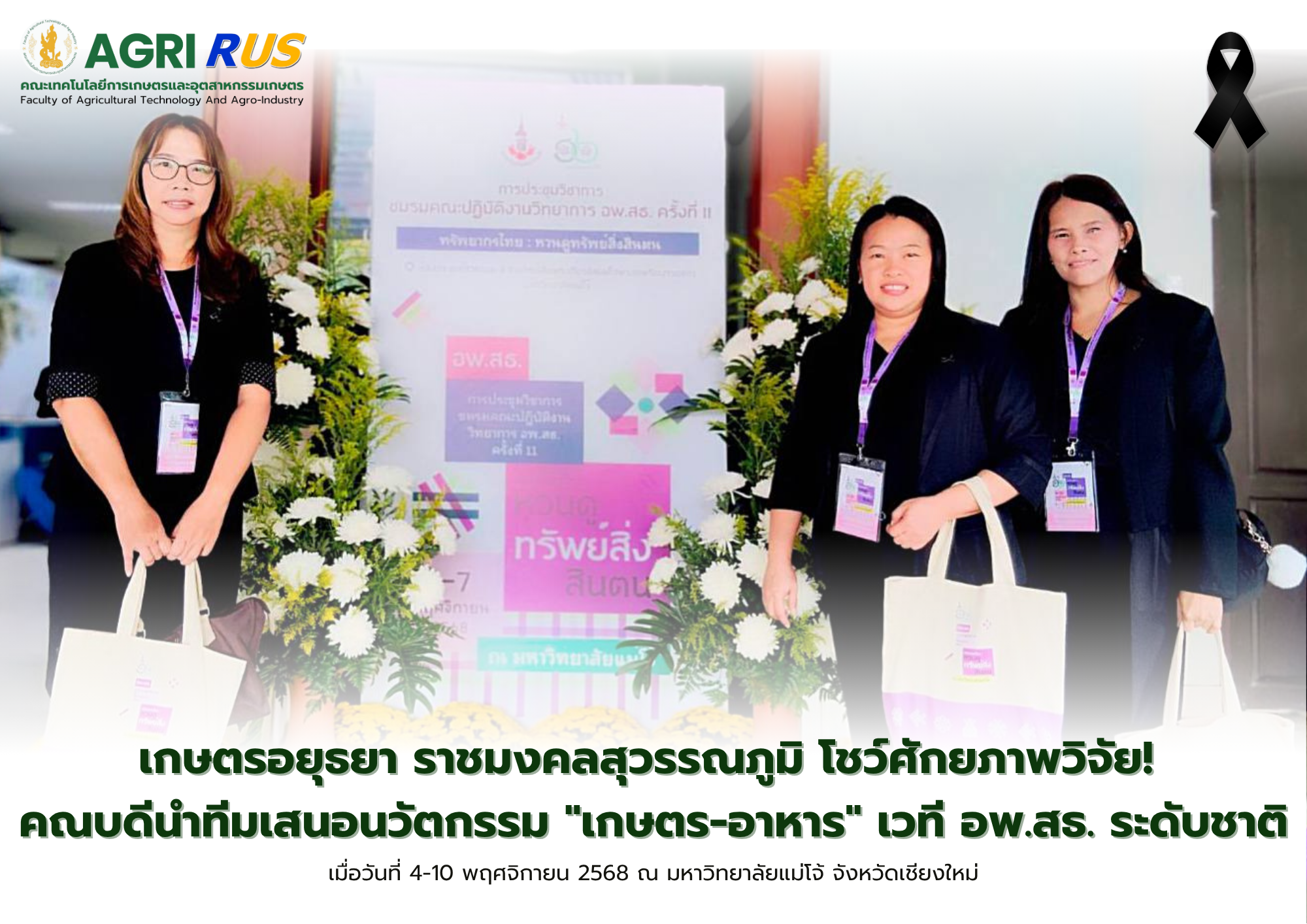 เกษตรอยุธยา ราชมงคลสุวรรณภูมิ โชว์ศักยภาพวิจัย! คณบดีนำทีมเสนอนวัตกรรม "เกษตร-อาหาร" เวที อพ.สธ. ระดับชาติ