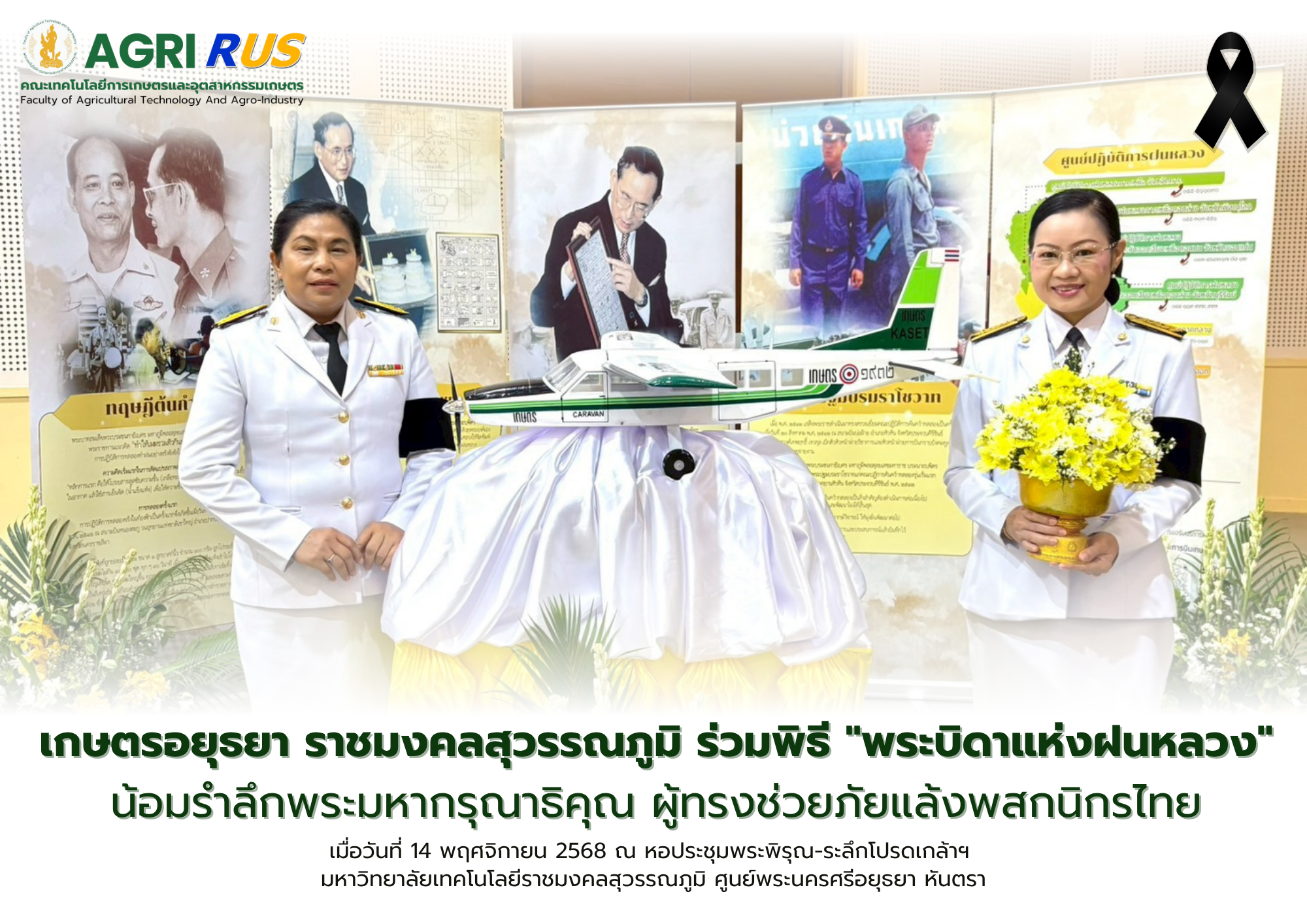 เกษตรอยุธยา ราชมงคลสุวรรณภูมิ ร่วมพิธี "พระบิดาแห่งฝนหลวง" น้อมรำลึกพระมหากรุณาธิคุณ ผู้ทรงช่วยภัยแล้งพสกนิกรไทย