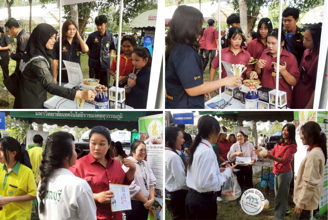 เมื่อวันที่ 26 พฤศจิกายน 2568 ทีมงานแนะแนว คณะเทคโนโลยีการเกษตรและอุตสาหกรรมเกษตร มทร.สุวรรณภูมิ เข้าจัดกิจกรรมแนะแนวการศึกษาต่อ เพื่อประชาสัมพันธ์หลักสูตรการจัดการเรียนการสอน และแนวทางการศึกษาต่อระดับปริญญาตรี ให้กับนักเรียนมัธยมศึกษา นักศึกษา ปวช./ปวส. พร้อมรับสมัครนักศึกษาใหม่ ประจำปีการศึกษา 2569 ในงานประชุมวิชาการองค์การเกษตรในอนาคตแห่งประเทศไทย ภาคกลาง ครั้งที่ 46