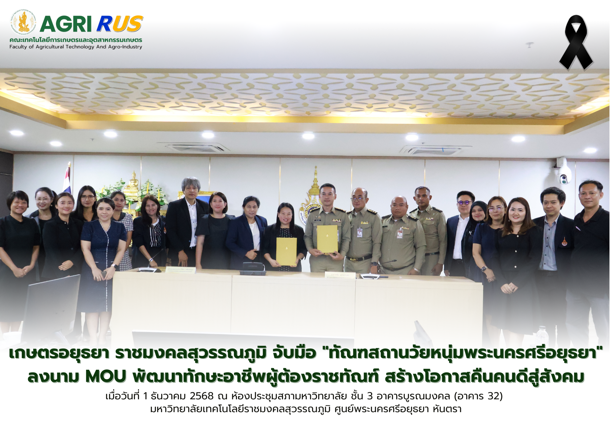 เกษตรอยุธยา ราชมงคลสุวรรณภูมิ จับมือ "ทัณฑสถานวัยหนุ่มพระนครศรีอยุธยา" ลงนาม MOU พัฒนาทักษะอาชีพผู้ต้องราชทัณฑ์ สร้างโอกาสคืนคนดีสู่สังคม