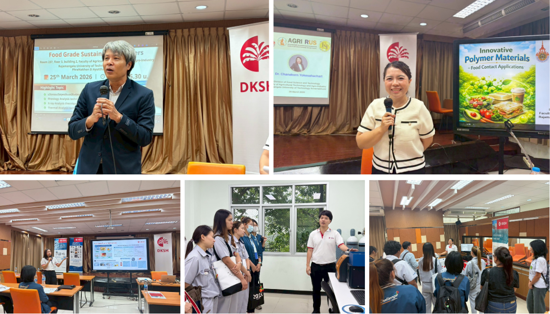 เมื่อวันที่ 25 มีนาคม 2569 คณะเทคโนโลยีการเกษตรและอุตสาหกรรมเกษตร มหาวิทยาลัยเทคโนโลยีราชมงคลสุวรรณภูมิ จัดกิจกรรมสัมมนาวิชาการในหัวข้อ “Advanced Material Testing for Food-Grade Sustainable Polymers” เพื่อถ่ายทอดองค์ความรู้ด้านเทคโนโลยีวัสดุขั้นสูงสำหรับอุตสาหกรรมอาหาร โดยมี อาจารย์ ดร.ฌนกร หยกสหชาติ อาจารย์สาขาวิชาวิทยาศาสตร์และเทคโนโลยีการอาหารเป็นวิทยากร ร่วมกับ บริษัท DKSH Scientific Thailand ซึ่งได้ถ่ายทอดความรู้เกี่ยวกับเทคนิคการทดสอบวัสดุขั้นสูง (Advanced Testing) สำหรับพอลิเมอร์ที่มีความปลอดภัยและเป็นมิตรต่อสิ่งแวดล้อม เหมาะสำหรับการใช้งานในอุตสาหกรรมอาหาร