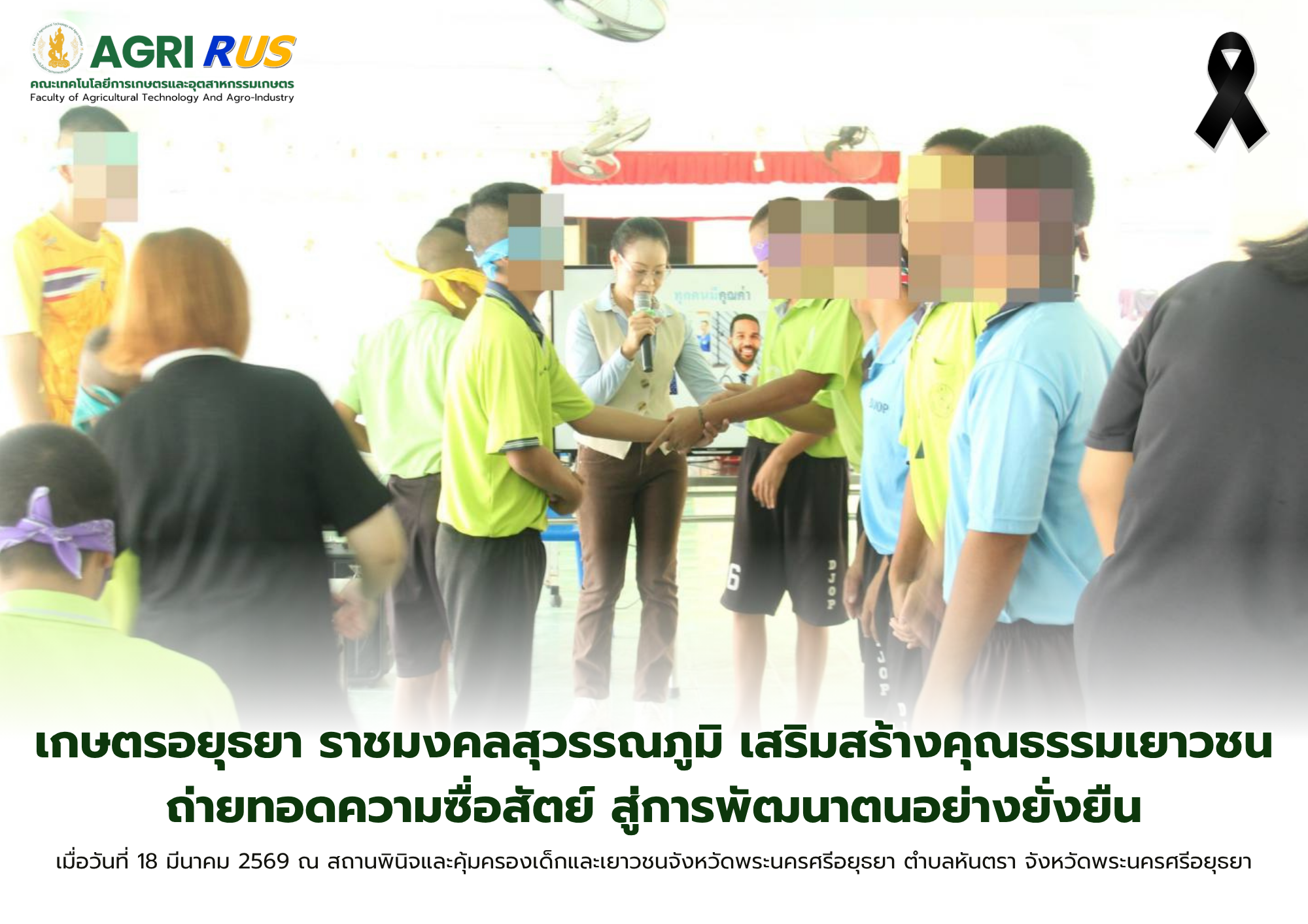 เกษตรอยุธยา ราชมงคลสุวรรณภูมิ เสริมสร้างคุณธรรมเยาวชน ถ่ายทอดความซื่อสัตย์ สู่การพัฒนาตนอย่างยั่งยืน
